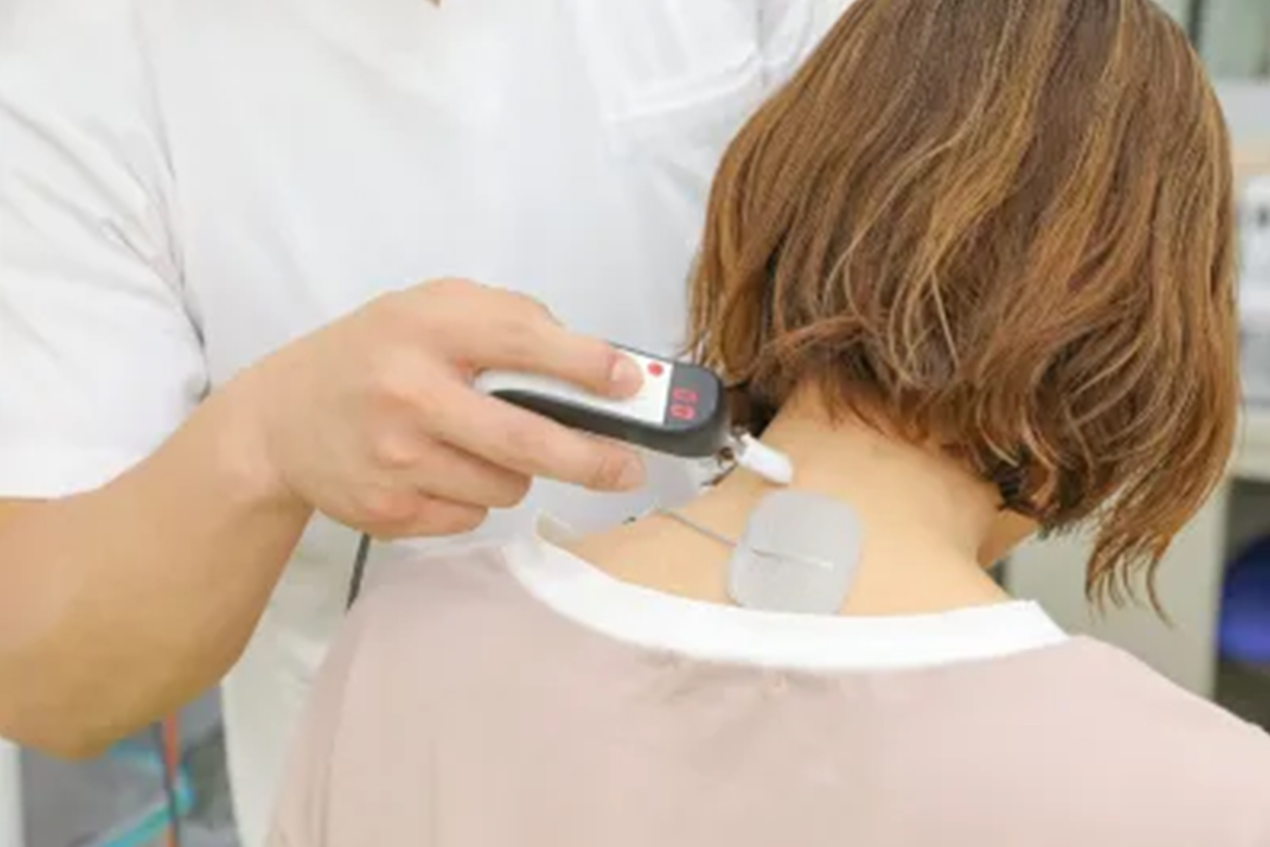 例えば肩や腰のつらさが「どこから来ているのか」がわかりにくいときでも、電気をあてることで原因の場所を見つけ出し、ピンポイントで施術できます。